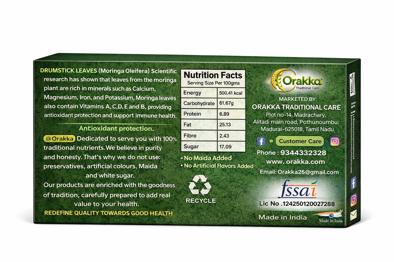 🌿 Enriched with Moringa (Drumstick Leaves)